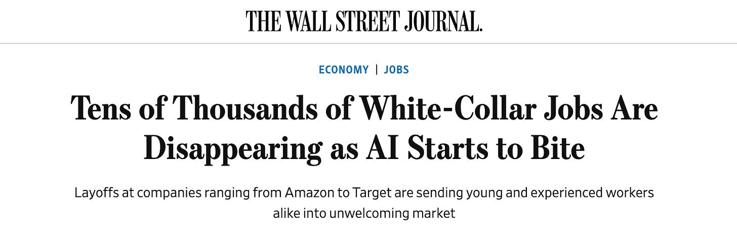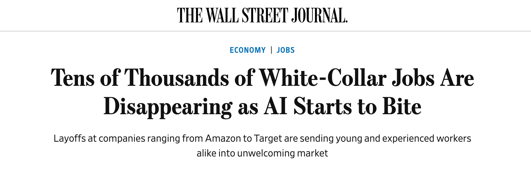 The media plays an important role in telling this story. Journalists, podcasters, YouTubers want to keep their audiences engaged. Frankly, the real story is boring compared to the hype, and “boring” is anathema to most outlets. While traditional journalists rarely, if ever directly attribute layoffs to AI, the nuance gets lost in articles where the words “AI” and “layoffs” appear together multiple times.